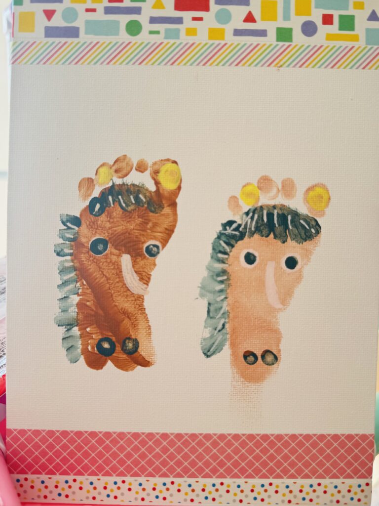 出産のときに記念でとった足形と並べて、